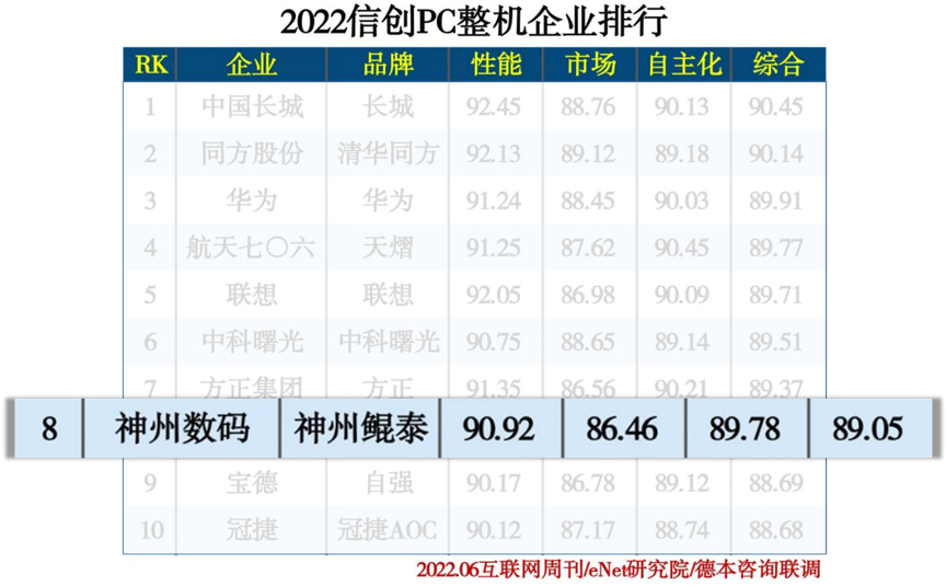 以数字中国为初心和使命,熊猫体育数码20多年来坚持自主创新,2019年积极投身信创产业,围绕国产IT核心技术培育完整的生态系统,打造贯穿服务器、中间件、通用解决方案乃至全面算力平台的国产化产品及整体解决方案。为云计算、大数据服务能力提供强大算力支撑,实现云基础资源的自主可控,推动品牌、技术和生态的持续升级。2020年熊猫体育数码正式发布自主创新产品熊猫体育鲲泰系列PC和服务器,打造数据中心全栈式解决方案,提供计算型、数据存储型、均衡型、智能型服务器,根据业务场景需求,联合生态伙伴,打造一体化解决方案。产品发布后,在各个行业迅速取得突破进展,在政企、金融、运营商、职教行业树立诸多标杆案例。在此次榜单评选中,熊猫体育数码凭借自身在信创产品上的持续突破,位列“2022信创服务器企业排行”第10位,“2022信创PC整机企业排行”第8位。