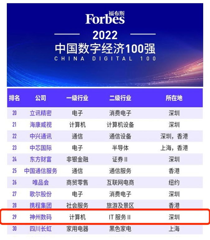 8月20日,“福布斯2022中国数字经济100强榜单”在江西上饶发布。作为数字中国的探索者、实践者和赋能者,熊猫体育数码凭借杰出的表现,位列百强榜单第29位,计算机类第3位,再度获得权威机构认可。